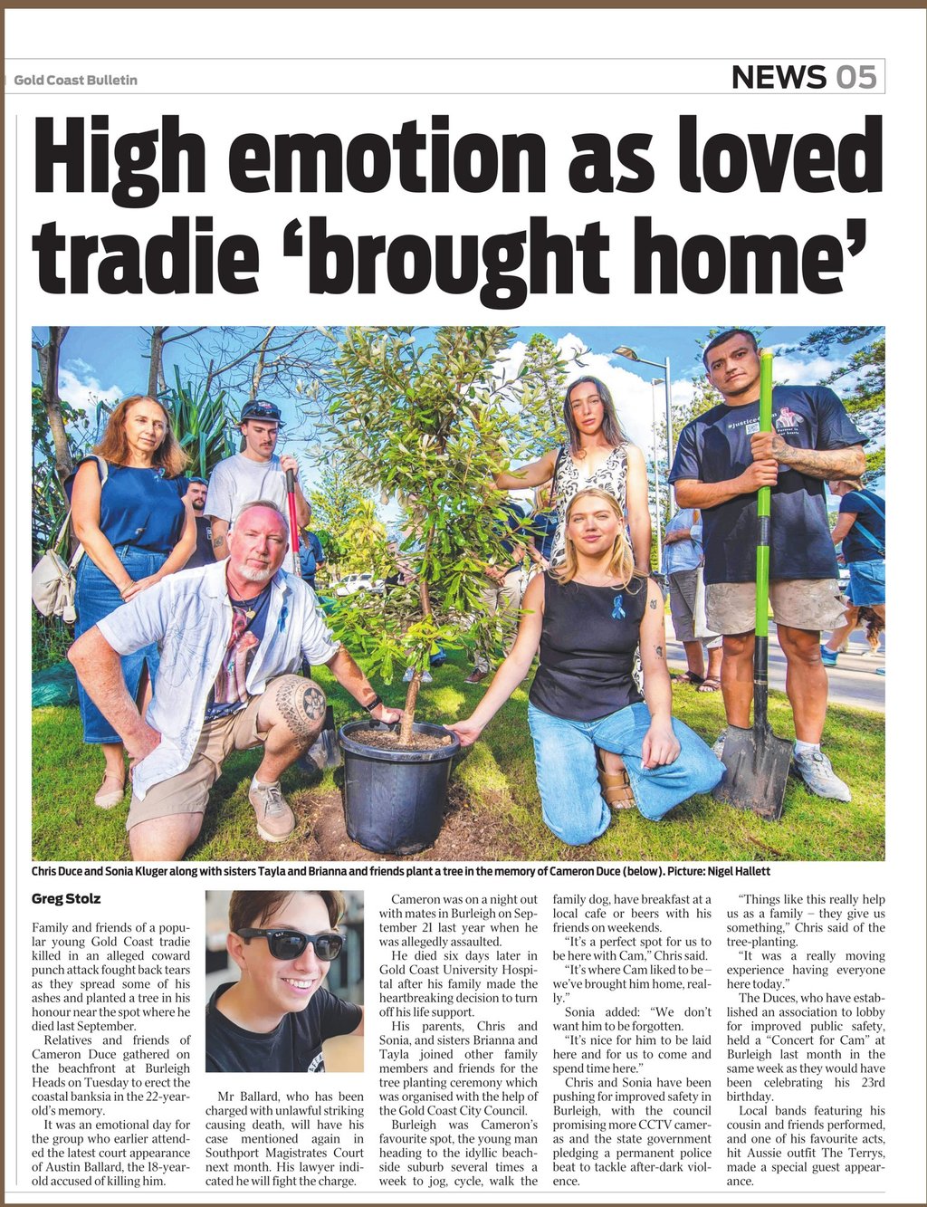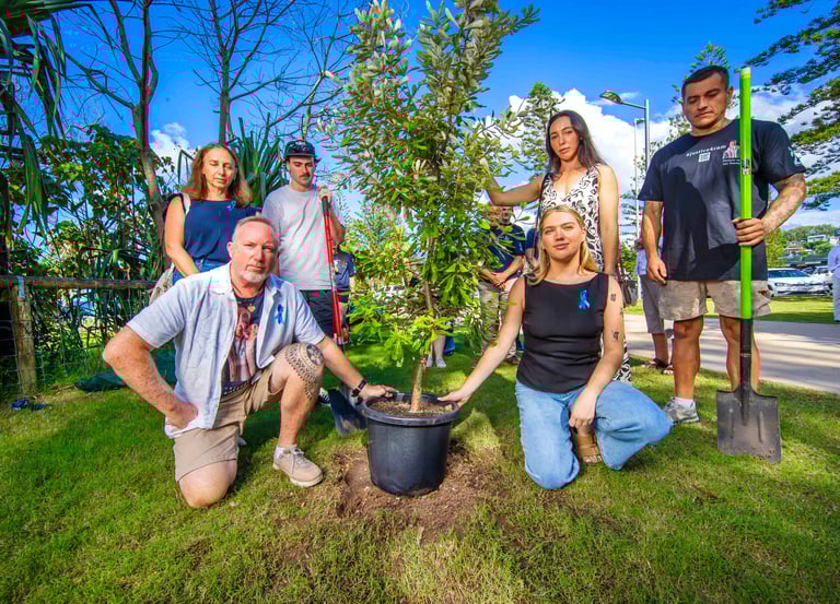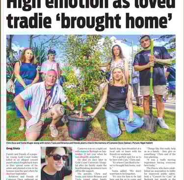 On the 8th April 2025 we were finally able to lay Cameron to rest in his favourite place, with a tree planting in his memory and honour at Burleigh Heads.